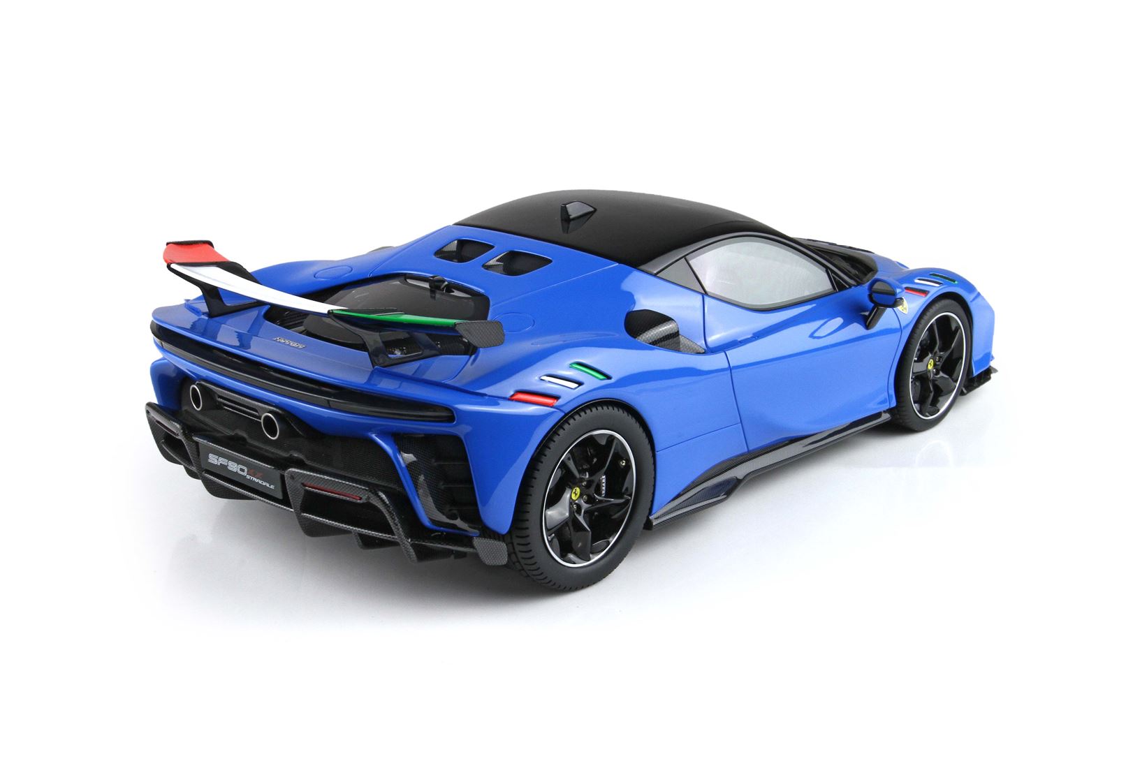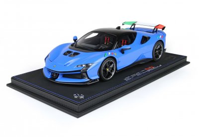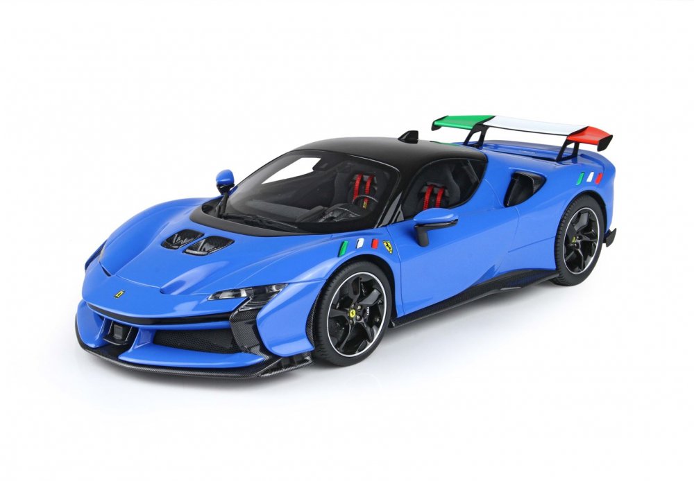 Ez az 1:18 méretarányú Ferrari SF90 XX modell az olasz trikolór és az Azzurro színvilág előtt tiszteleg. Érdekesség, hogy a hivatalos Ferrari színek közül a French Racing Blue áll a legközelebb ahhoz az árnyalathoz, amelyet az olasz sportcsapatok mezén is megszokhattunk.