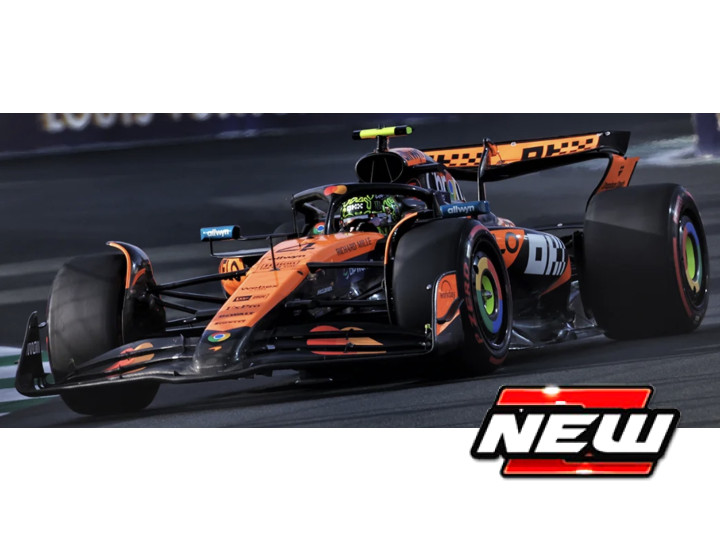 McLaren F1 MCL39 #4 2025 L. Norris vitrinnel és pilótával