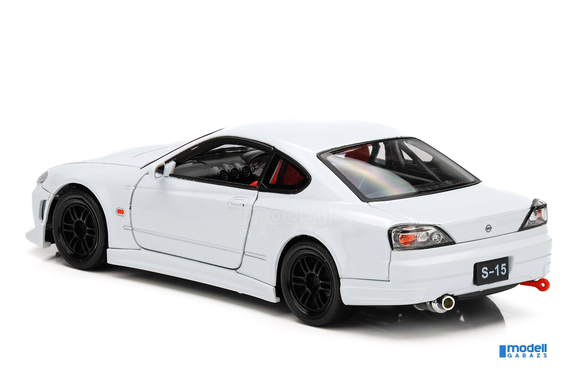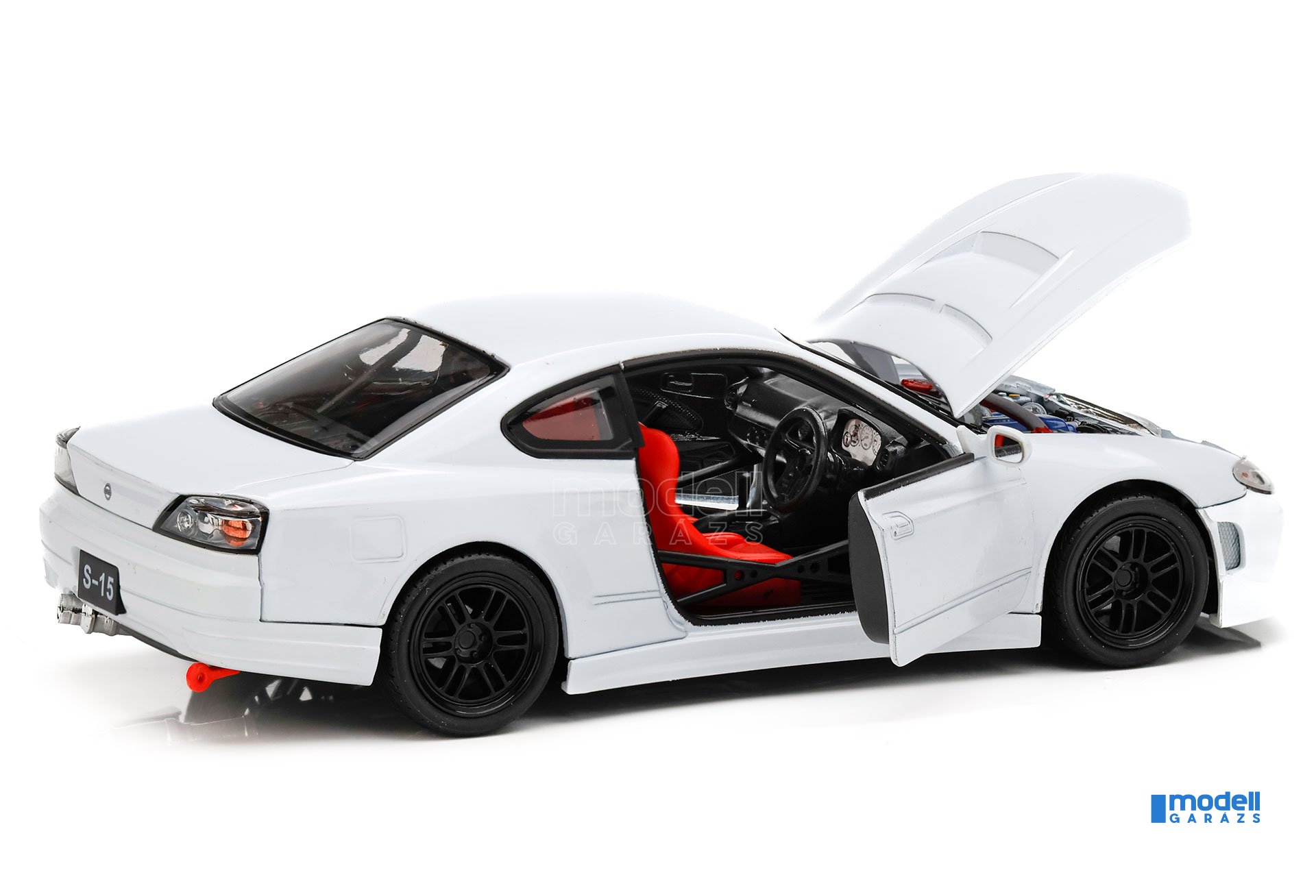 A fém kivitelű Nissan Silvia S15 modell részletgazdag kidolgozást kapott. Az ajtók és a motorháztető nyithatók, a motortérben a motorblokk a kategóriájához képest kifejezetten szépen kidolgozott. A belső tér jobbkormányos kialakítású, hűen követve az eredeti japán specifikációt. A kerekek nemcsak gurulnak, hanem el is fordíthatók, ami természetes megjelenést ad a modellnek.